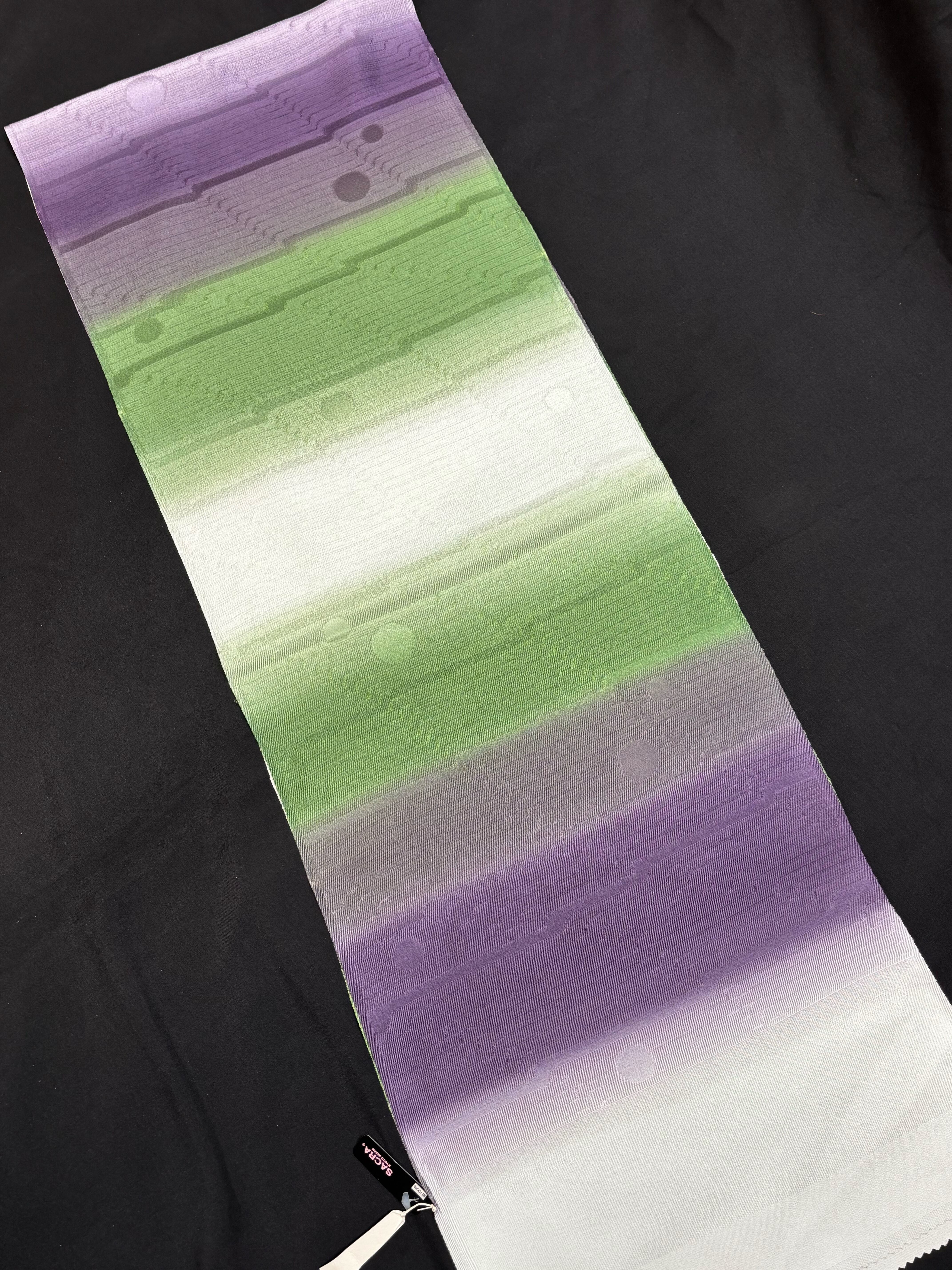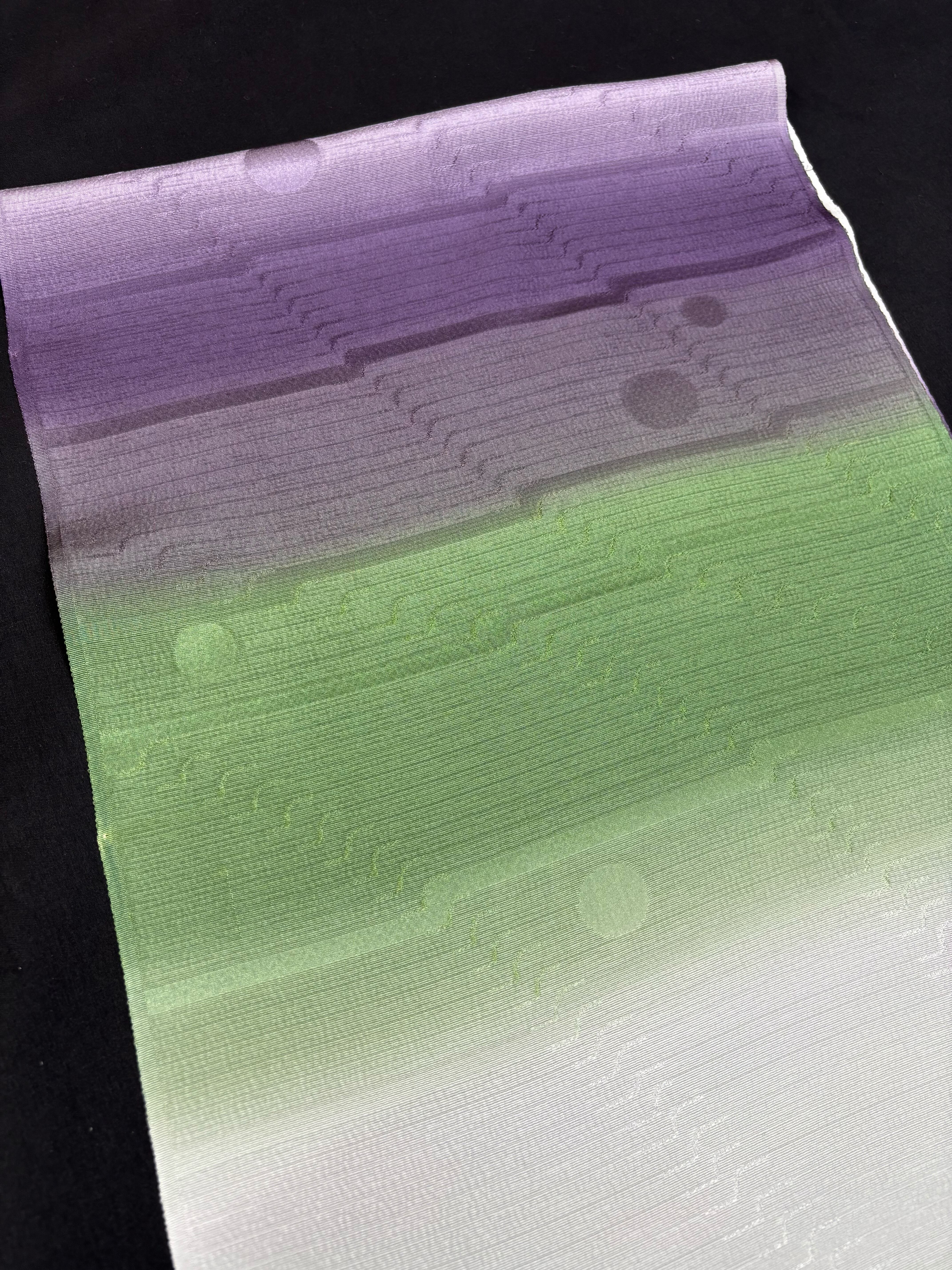 洗練されたぼかし柄が特徴的な帯揚げで、和装に上品さと個性を添えるアイテムです。優雅に流れる色合いが、着物スタイルを魅力的に引き立て、特別なシーンを一層華やかに演出します!