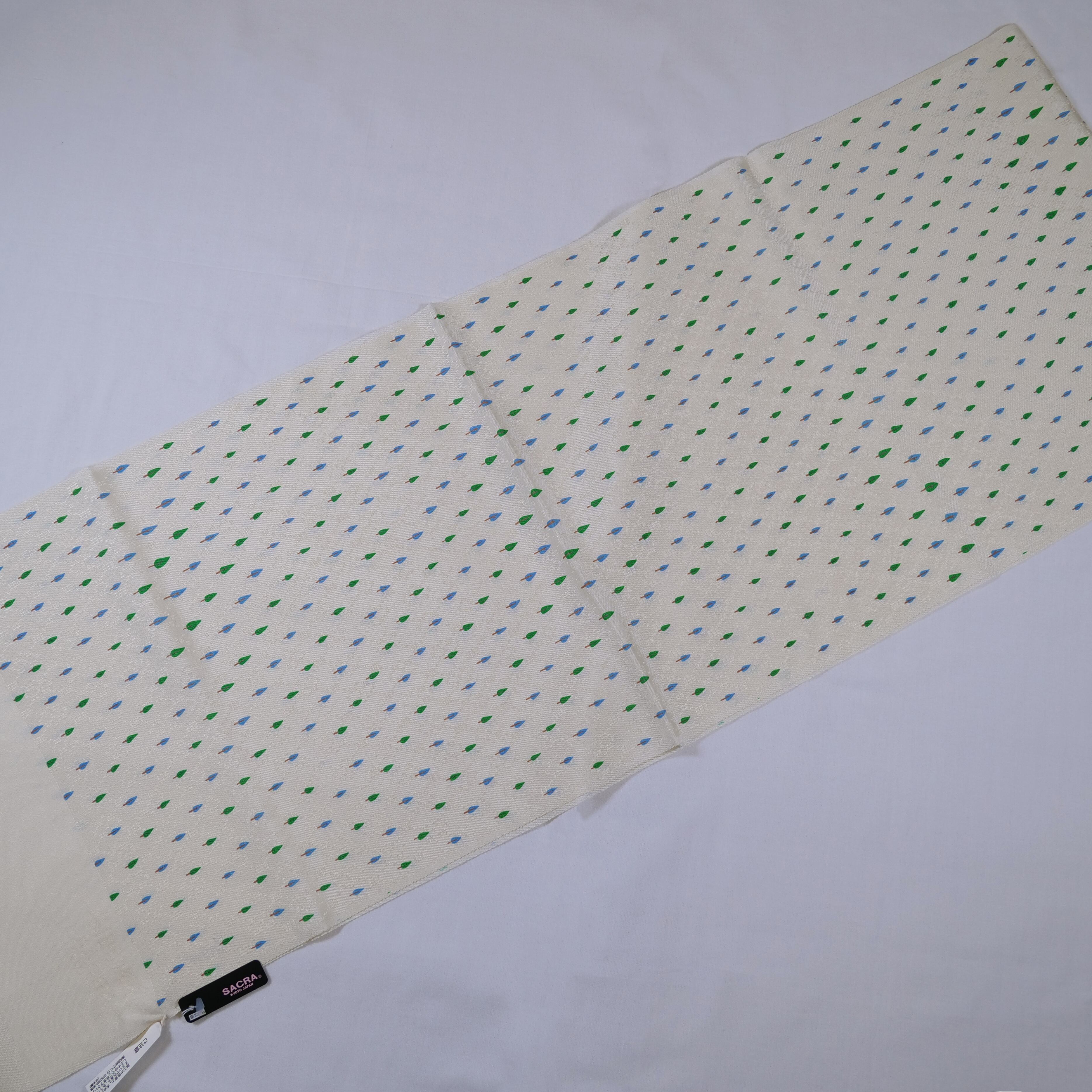 SACRAの帯揚はそんな「こぼれいろ」をきものを染めるのと同様の技術と手間をかけて作られています。美しい着姿と美しいきものと帯の合わせに花を添える帯揚にも一切の妥協をしない。それがSACRAの帯揚に込められた美しい着姿への願いなのです。