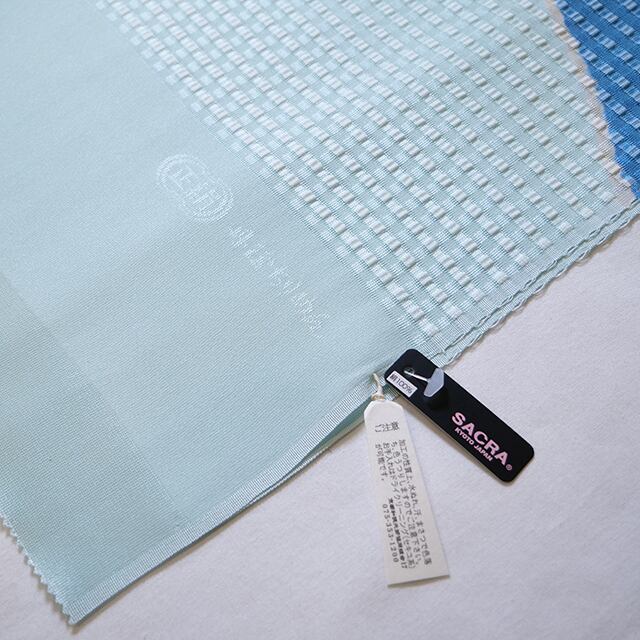 SACRAの帯揚はそんな「こぼれいろ」をきものを染めるのと同様の技術と手間をかけて作られています。美しい着姿と美しいきものと帯の合わせに花を添える帯揚にも一切の妥協をしない。それがSACRAの帯揚に込められた美しい着姿への願いなのです。